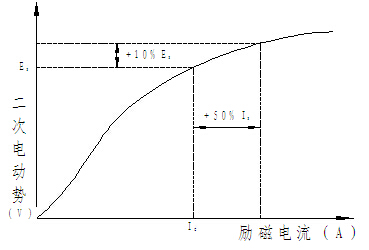 额定拐点电动势定义为电流互感器所有其他端子均开路时,施加于二次端子上的额定频率正弦波电动势最小方均根值。当此值增加10%时,其励磁电流方均根值增加至但不大于50%。额定拐点电动势可用以下公式表示:
