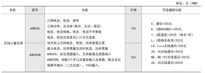 ADW300无线计量仪表主要用于计量低压网络的三相有功电能,具有RS485通讯和470MHz无线通讯功能,方便用户进行用电监测、集抄和管理。可灵活安装于配电箱内,实现对不同区域和不同负荷的分项电能计量,统计和分析。