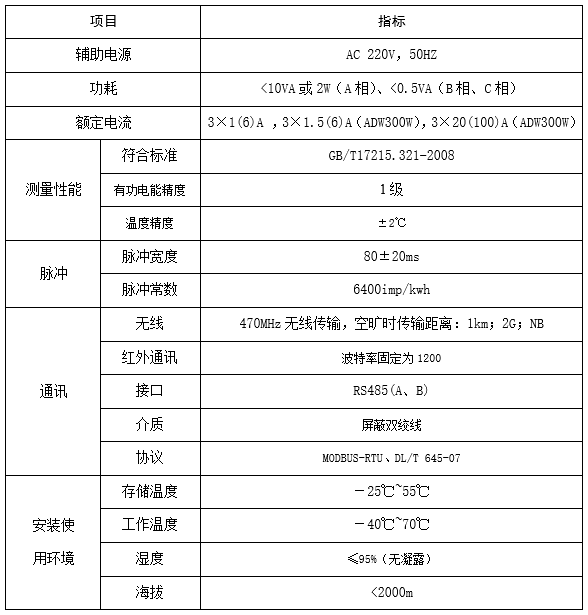 技术要求:额定电流3×1.5(6)A(ADW300W),3×20(100)A(ADW300W)