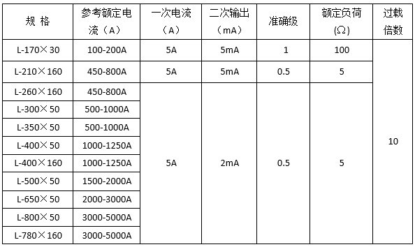 技术要求:输入电流10A;二次输出信号5mA;准确级0.5级;额定负荷:0.2VA;过载倍数8。