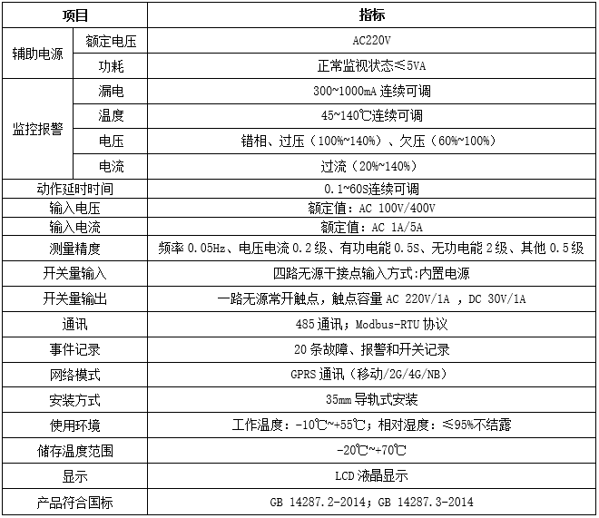 通讯协议:RS485通讯,Modbus-RTU协议、GPRS无线通讯